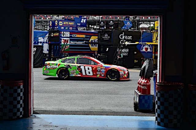 It also would’ve been fitting for Kenseth’s car to have a flying character — Falcon or Iron Man — on board, since the No. 20 blew over down the backstretch. He wasn’t the only car to go upside down that race: Chris Buescher barrel-rolled there earlier in the race, and Harvick nearly rolled over into the catch fence on the final lap.