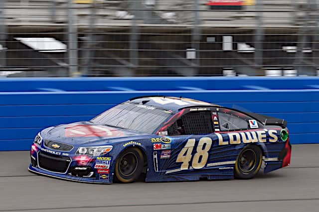 Johnson’s No. 48 bore the blue, red and yellow of Superman’s suit, complete with this carbon fiber-esque texture.