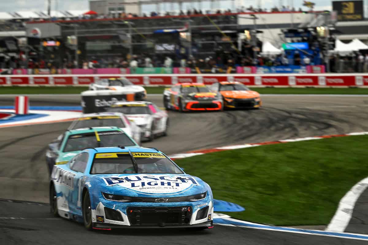 However, the last lap altercation with Hamlin was not Chastain’s only error. After making a pit stop on lap 27, Chastain did not turn quickly enough at the sharp left-hand exit of pit road, causing the No. 1 to overshoot the corner. Although Chastain avoided any contact, the gaffe cost him all his track position, forcing him to drive through the field just to catch back up to the other playoff drivers.