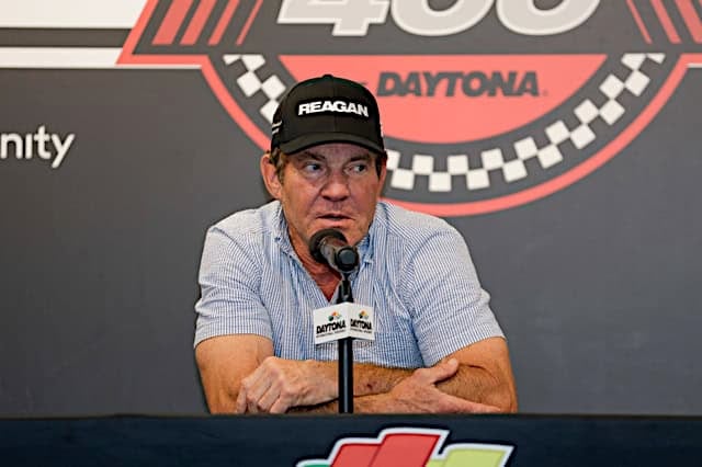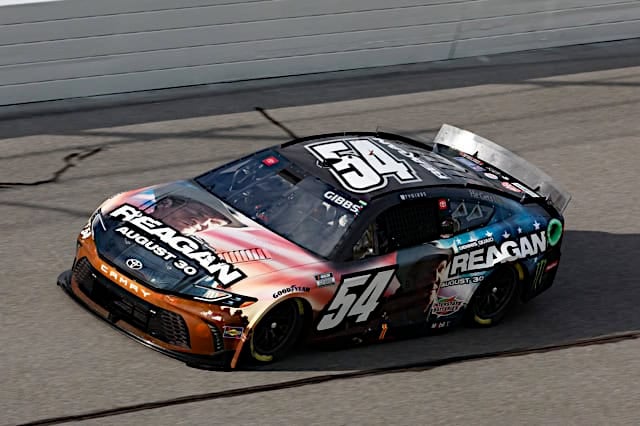 The night after Graf drove Reagan/Quaid’s face around Daytona, Ty Gibbs ran a Cup car with the same scheme, starting 26th and finishing 5th.